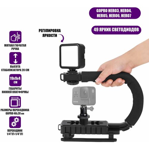 Ручной стабилизатор RS-OA для камеры, ручка-держатель для GoPro с осветителем на аккумуляторе