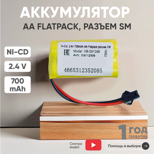 Аккумуляторная батарея для радиоуправляемых игрушек / моделей, AA Flatpack, разъем SM, 2.4В, 700мАч, Ni-Cd