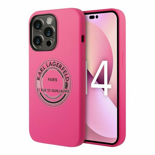 Karl Lagerfeld силиконовый чехол для iPhone 14 Pro Max, Liquid silicone Round RSG logo розовый