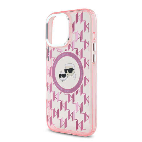 Lagerfeld для iPhone 16 Pro Max чехол PC/TPU Monogram NFT Karl & Choup Metal Cam Hard Pink (MagSafe)