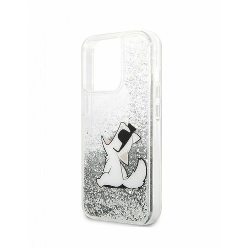 Чехол Karl Lagerfeld Liquid Glitter Choupette Fun Hard для iPhone 14 Pro Max, цвет Серебристый (KLHCP14XGCFS)