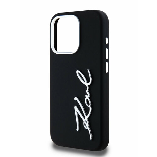 Lagerfeld для iPhone 15 Pro Max чехол Liquid silicone Signature Metal logo & Camera frame Hard Black