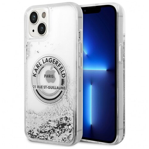 Чехол Karl Lagerfeld Liquid glitter RSG logo Hard для iPhone 14, цвет Серебристый (KLHCP14SLCRSGRS)