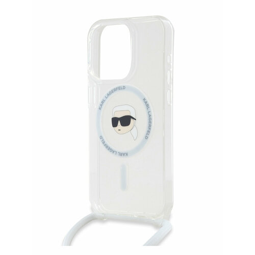 Lagerfeld для iPhone 15 Pro Max чехол Crossbody PC/TPU NFT Karl Head Hard Transp (MagSafe) + Cord