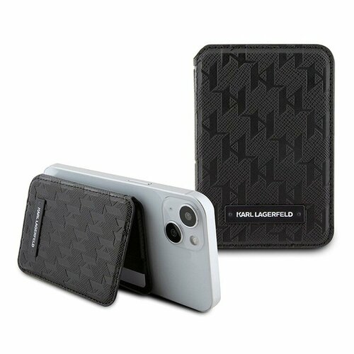 Karl Lagerfeld магнитный бумажник-подставка Wallet MagSafe Cardslot Stand Saffiano Monogram Plate loogo Black