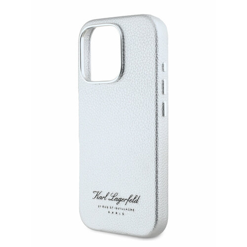 Lagerfeld для iPhone 16 Pro Max чехол PU Full Wrapped Grained leather & Metal Camera Hard Grey