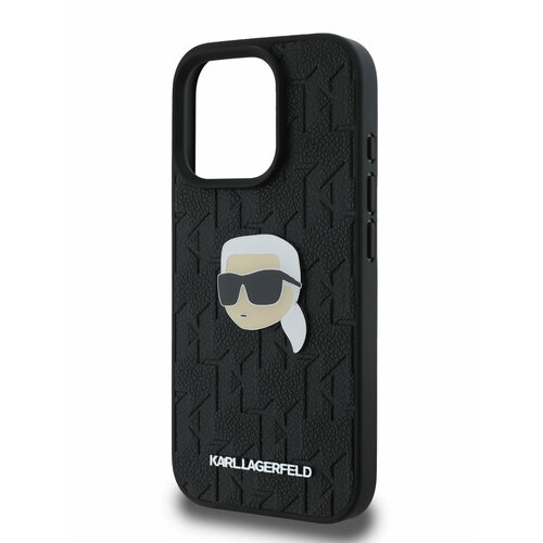Lagerfeld для iPhone 16 Pro чехол PU Grained Monogram NFT Karl metal Head Hard Black