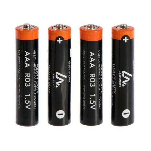 Батарейка солевая LuazON Heavy Duty, AAA, R03, спайка, 4 шт