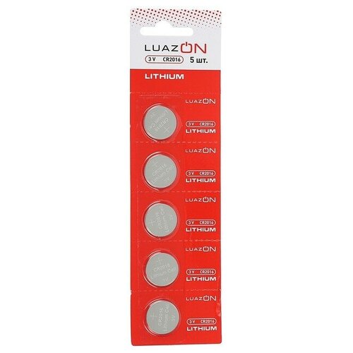 Батарейка литиевая LuazON, CR2016, 3V, блистер, 5 шт