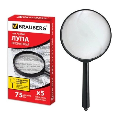 Лупа Brauberg (увеличение х5, d=75мм) (451800), 12шт.