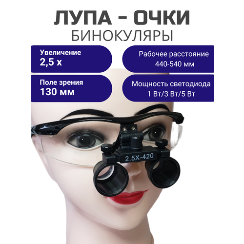Лупа очки 2,5Х, бинокуляры "стомотологические"