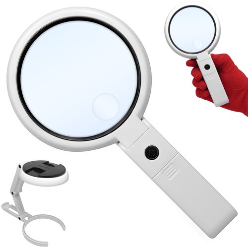 Лупа увеличительная ручная 3x/64мм с подсветкой и подставкой (th-7006)