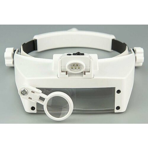 Лупа налобная со сменными стеклами-насадками и удобным фиксатором-обручем на голове.