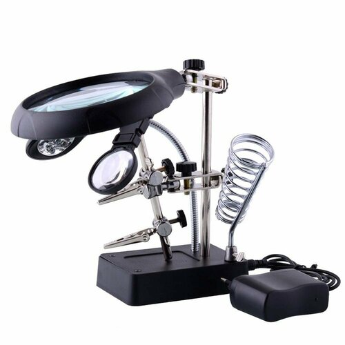 Pro Legend Лупа настольная 2.5x/7.5x/10x третья рука с держателем и подсветкой 5 LED PL4437