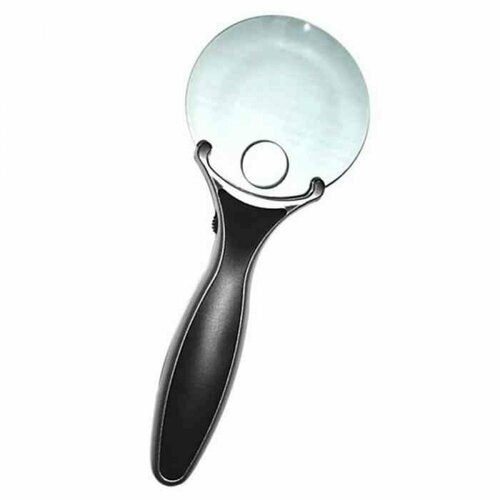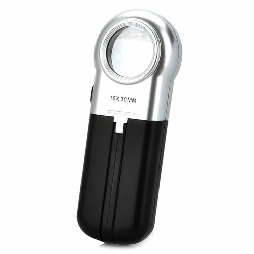 Лупа ручная круглая 16x-30мм для чтения с подсветкой (2 LED, черно-серебристая трансформер)