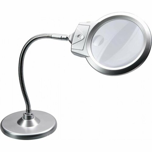 Лупа настольная 2x/5x-130мм на гибком штативе с подсветкой (2 LED) MG4B-7