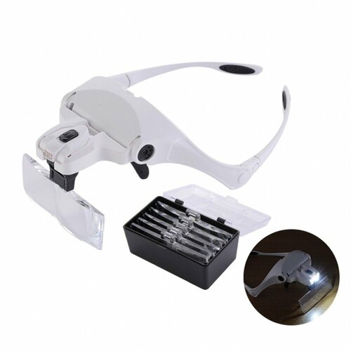 Лупа налобная 3.5x (очки) с подсветкой (2 LED)