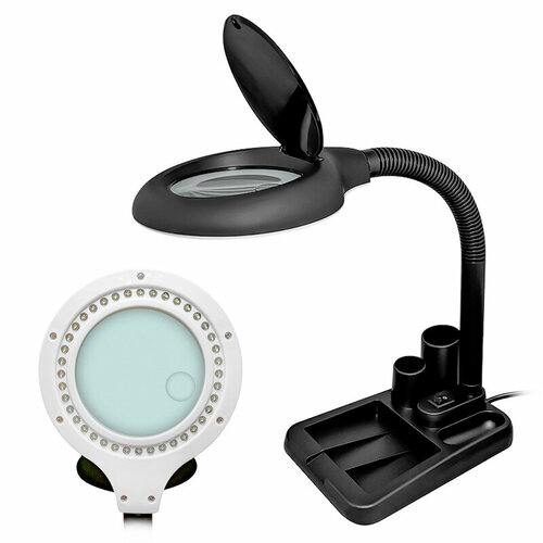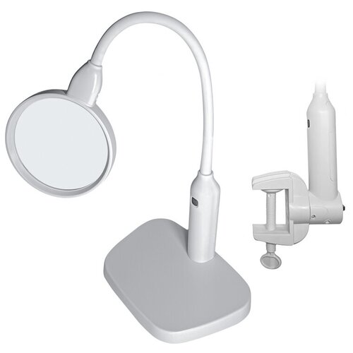 Лупа настольная с подсветкой и сменными линзами с подставкой и на струбцине для чтения и рукоделия (6 LED) 2x/5x-120мм/75мм (7763)