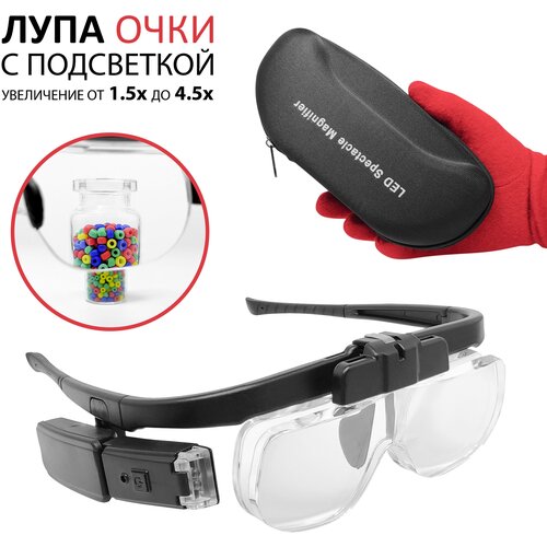 Лупа налобная с подсветкой и регулируемыми стеклами-насадками (прмт-102672)