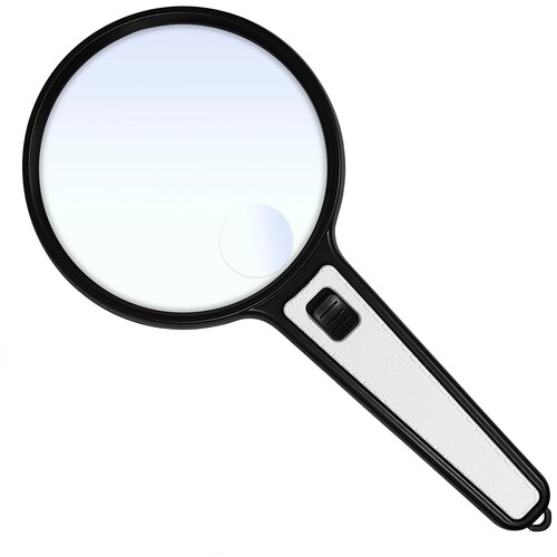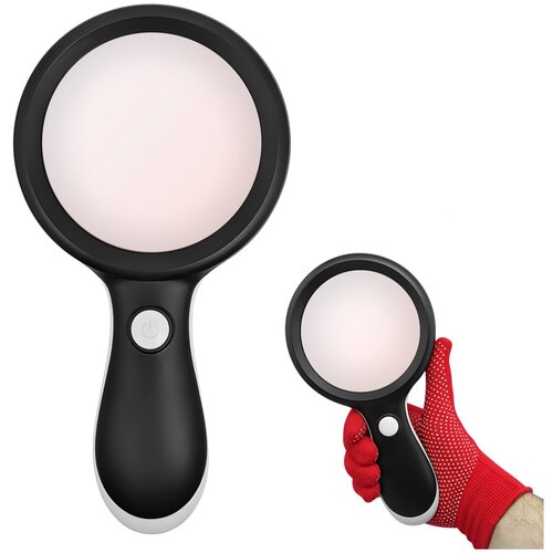 Лупа ручная с 10 кратным увеличением большого диаметра для чтения и рукоделия 10х/30х с подсветкой 110мм (103218)