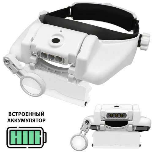 Лупа налобная с подсветкой, встроенным аккумулятором и регулируемыми стеклами-насадками USB (прмт-103291)