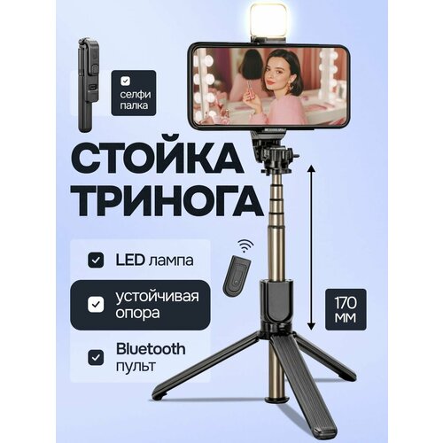 Монопод-трипод для телефона с подсветкой и bluetooth-пультом для селфи, штатиф