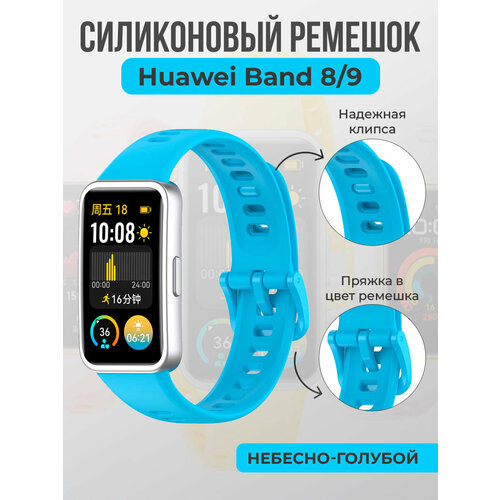 Силиконовый ремешок для Huawei Band 8/9, с клипсой, небесно-голубой