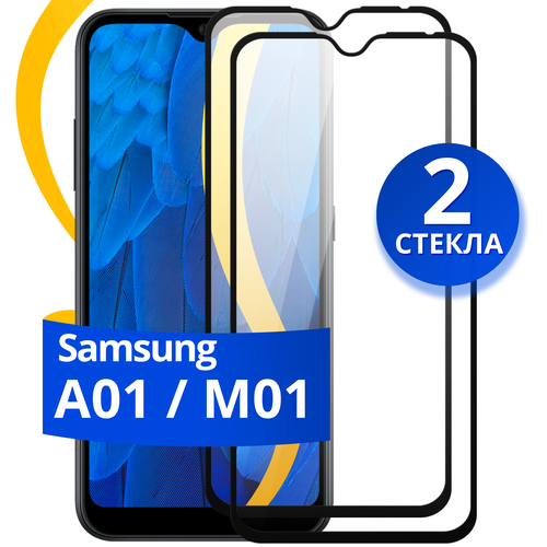 Комплект из 2 шт. Глянцевое защитное стекло для телефона Samsung Galaxy A01 и M01 / Противоударное стекло на cмартфон Самсунг Галакси А01 и М01