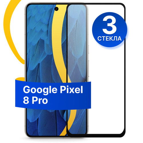 Комплект 3 шт. Защитное стекло для Google Pixel 8 Pro / Противоударное стекло на Гугл Пиксель 8 Про
