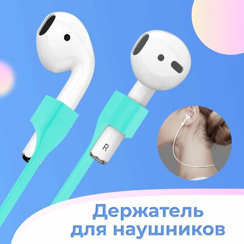 Силиконовый шнур держатель для наушников Apple Airpods 1 и 2 / Магнитное крепление на шнурке для беспроводных наушников Эпл Аирподс 1 и 2 / Бирюзовый