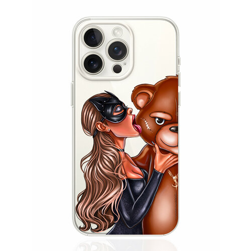 Чехол для смартфона iPhone 15 Pro Max прозрачный силиконовый Кошечка русая и мишка
