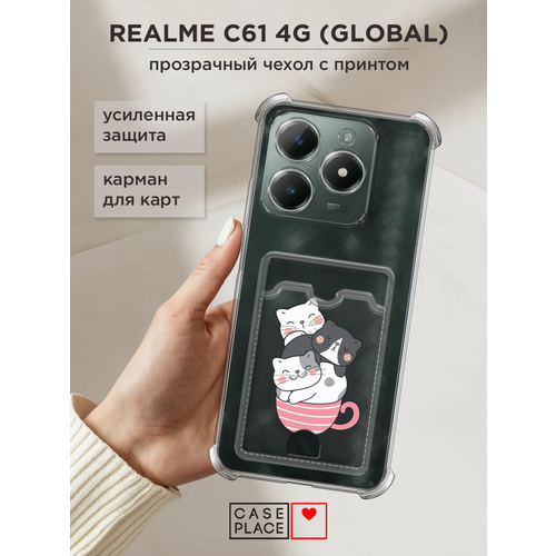 Чехол на Realme C61 4G (Global) (Реалми C61 4G) с картой и принтом Коты в чашке