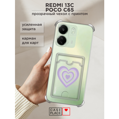 Чехол на Xiaomi Redmi 13C/Poco C65 (Сяоми Редми 13C/Поко С65) с картой и принтом Сиреневое сердечко