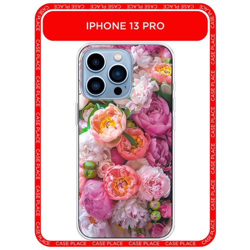 Чехол на Apple iPhone 13 Pro / Айфон 13 Про с принтом Сочные пионы