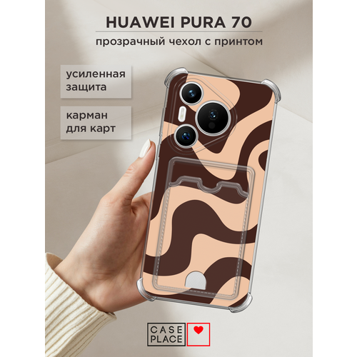 Чехол на Huawei Pura 70 (Хуавей Пура 70) с картой и принтом Кофейные узоры