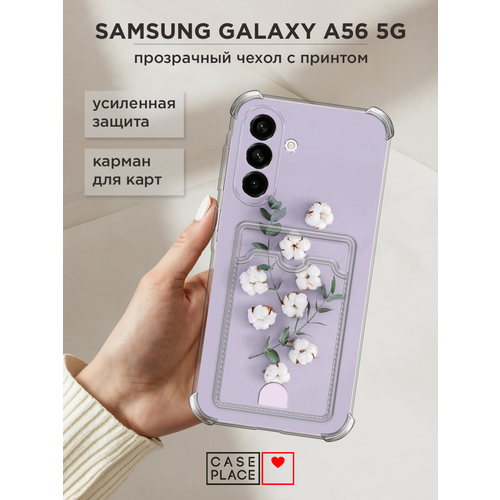 Чехол на Samsung Galaxy A56 5G (Самсунг Галакси А56 5G) с картой и принтом Веточка хлопка