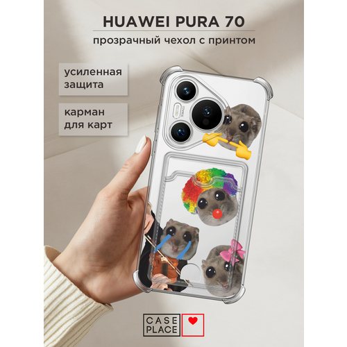 Чехол на Huawei Pura 70 (Хуавей Пура 70) с картой и принтом Хомяки