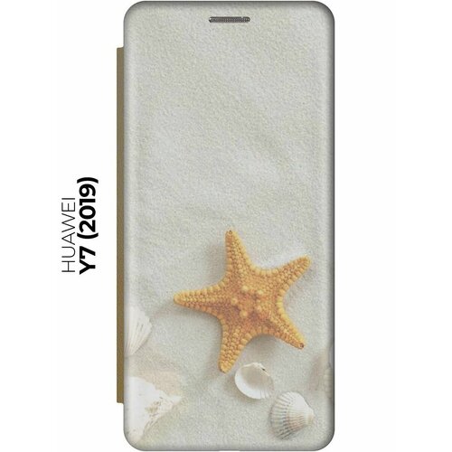 Чехол-книжка Желтая морская звезда на Huawei Y7 (2019) / Хуавей У7 2019 золотой