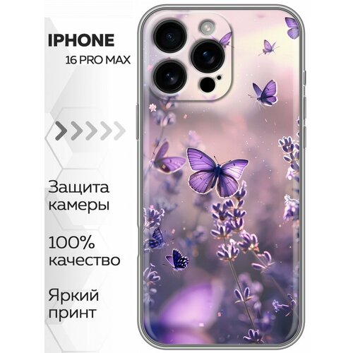 Чехол для Iphone 16 Pro Max с принтом бабочки и лаванда (Айфон 16 Про Макс)