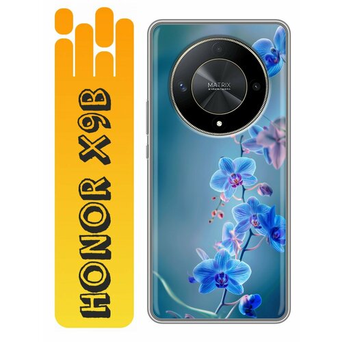 Чехол для Honor X9b 5G с принтом Голубые цветы (Хонор Х9б 5G)