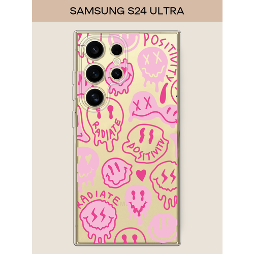 Чехол на Samsung Galaxy S24 Ultra / Самсунг S24 Ultra с принтом Галлюциногенные смайлики, прозрачный