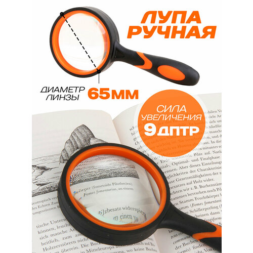Лупа ручная увеличительная Magnifying Glass увеличительное стекло для чтение 65 мм, черно-оранжевая