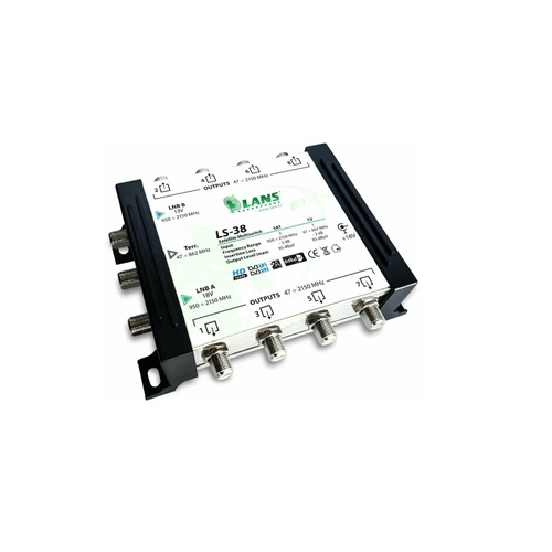Мультисвитч активный Lans LS38 Оконечный (3*8,13/18v, входы: 1 TV + 2 SAT,8 выходов)