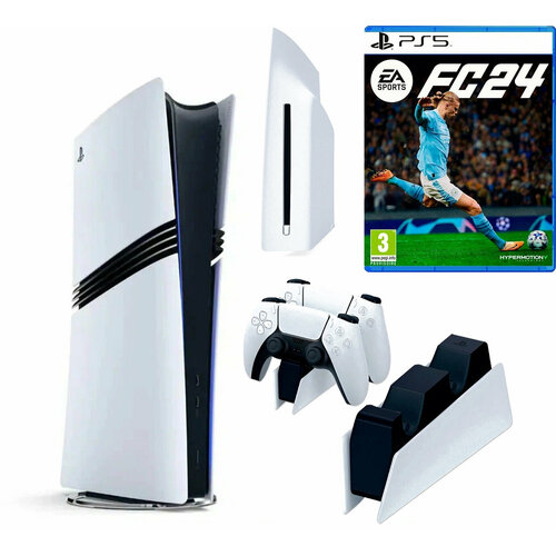 Игровая приставка Sony PlayStation 5 Pro Digital Edition, 2Tb SSD, + FC24 + Зарядная станция + Дисковод + 2й геймпада (белый и/черный/cиний)