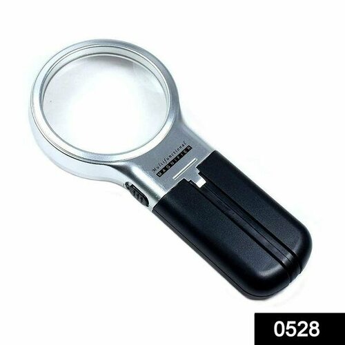 Лупа ручная круглая 16х-кратная для чтения с подсветкой (2 LED, черно-серебристая трансформер)