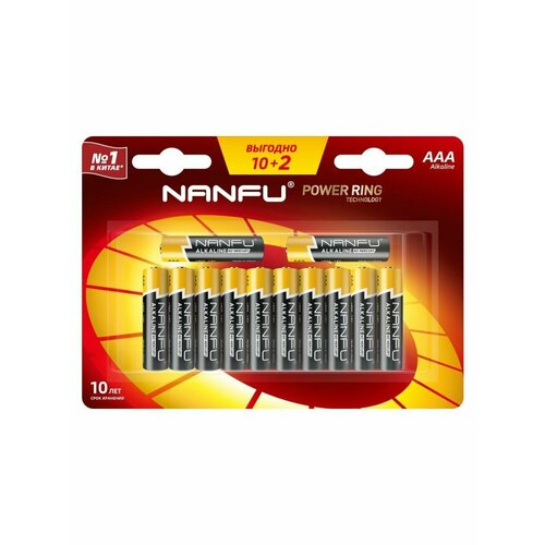 Батарейка Nanfu щелочная, AАA, 10+2 шт.