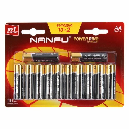 NANFU Батарейка алкалиновая Nanfu, AA, LR6-12BL, 1.5В, блистер, 12 шт.