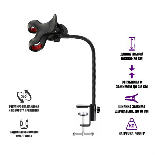 Держатель SG-P10 смартфона на гибком креплении и струбцине