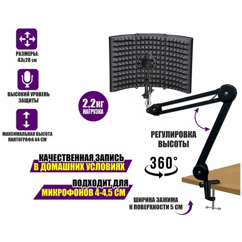 Акустический экран PTS-AKMP с металлическим держателем микрофона паук на усиленной настольной стойке пантограф