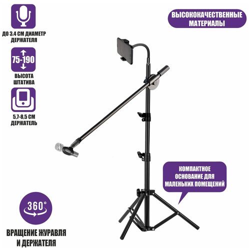 Микрофонная стойка журавль MCPro-5C с держателем для ручного микрофона, держателем прищепка и чехлом для переноски